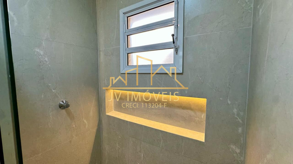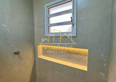 Banheiro com box e nichos com LED;